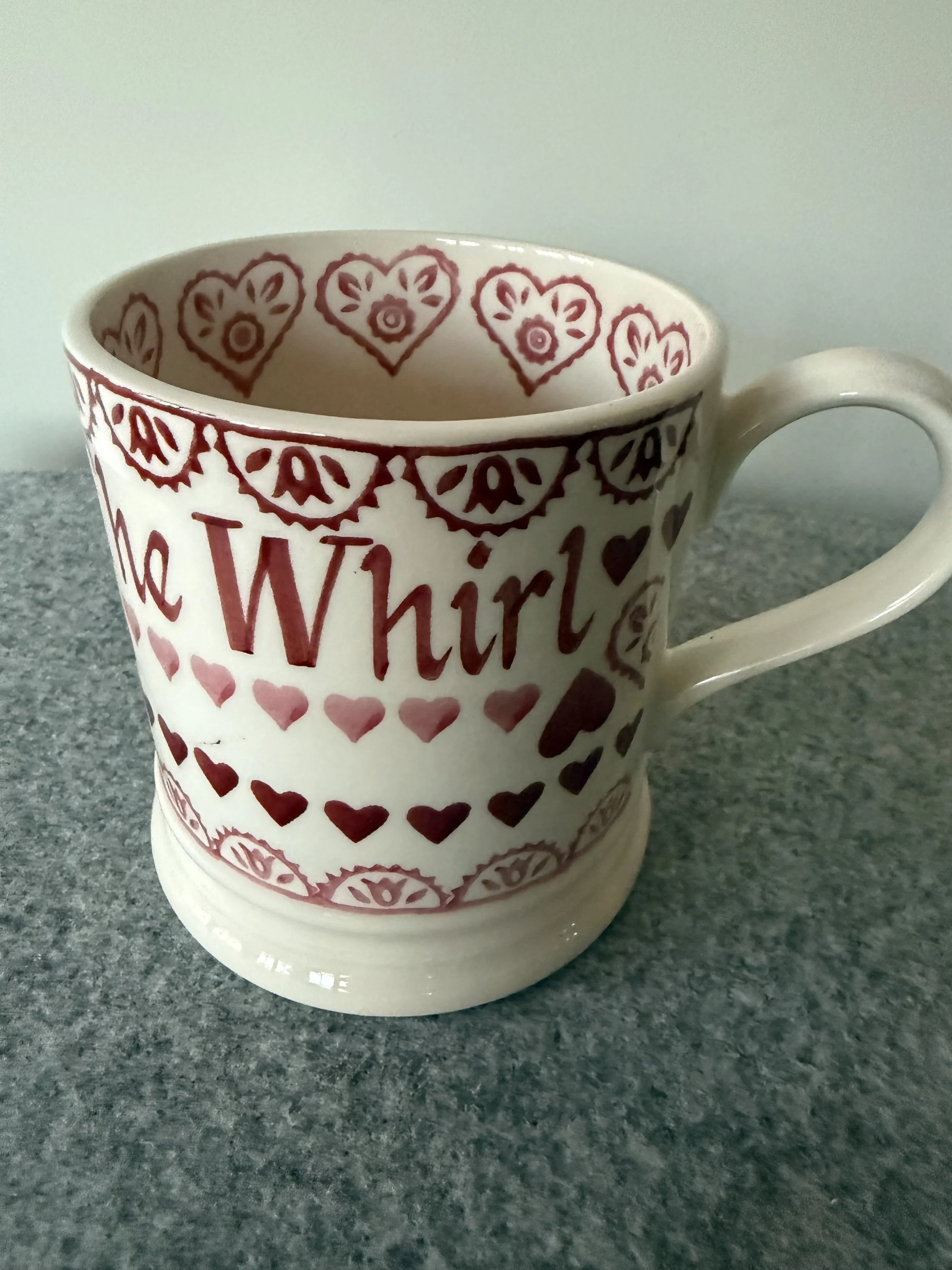 ‘got gifted this fab custom Emma Bridgewater mug to commemorate the launch of The Whirl 🥰 thank you to you-know-who-you are 🙏🏼